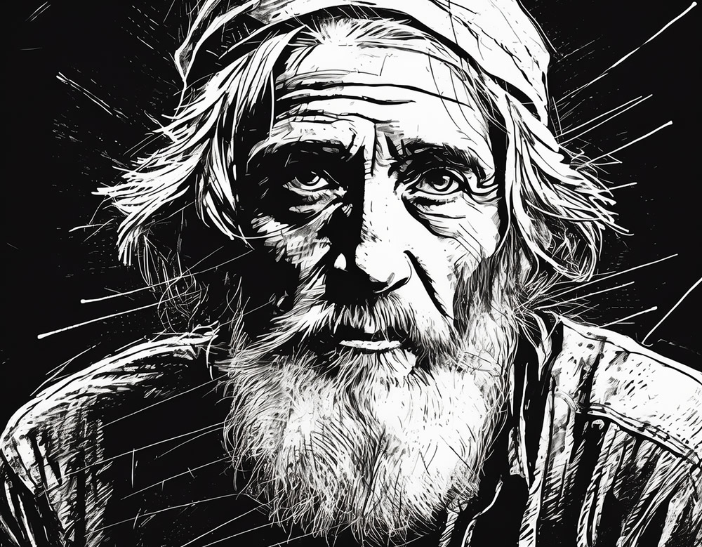 “Numa miserável água-furtada da Rua do Four-Saint-Germain, vivia pobremente um indivíduo de certa idade, chamado P… Ele não recebia ninguém, e fazia sua própria comida, muito mais frugal que a de um anacoreta. Vestindo roupas sórdidas, ele dormia numa enxerga ainda mais sórdida. De magreza extrema, parecia ressecado pelas privações de todo gênero e era julgado em geral vítima da mais profunda pobreza.