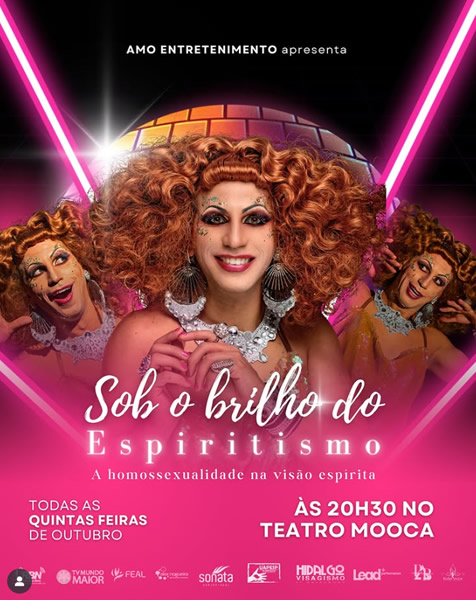 A produtora Amo Entretenimento oferece no Teatro Mooca uma programação com peças teatrais baseadas em obras espíritas. Entre os espetáculos em cartaz até novembro, estão “Joana d’Arc Médium”; “O Milagre de Santa Maria, a surpreendente história de Eurípedes Barsanulfo” e “Meu Amigo São Francisco”.